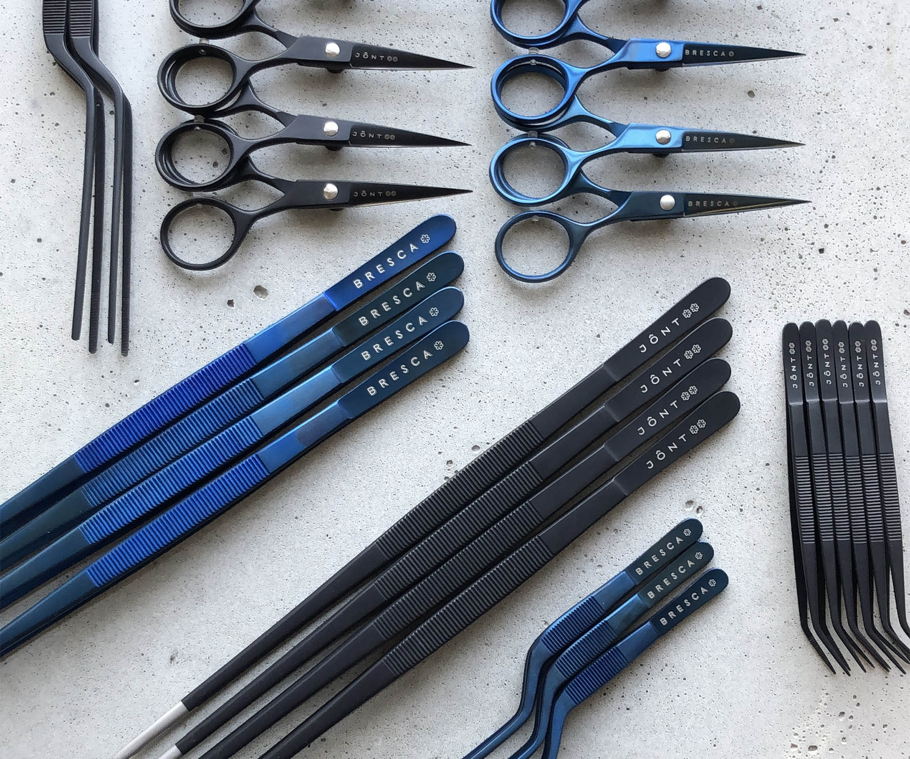 Expert chef using Oui Chef straight tweezers to plate a dish OuiChef_Precision_Kitchen_Tools_for_chefs